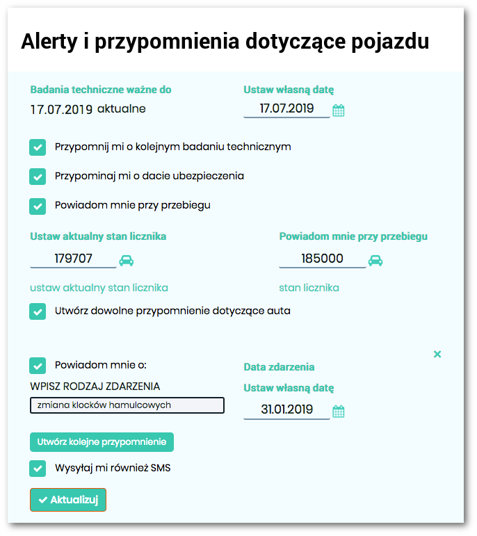 kończącym się ubezpieczeniu czy konieczności wymiany oleju?